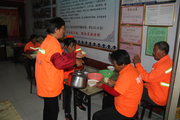 石福軍的這家包子鋪是2014年10月底開張的。在此之前,石福軍經(jīng)營了10年酒店,生意好時日收入在萬元左右。后來政府搞新城區(qū)改造,他的酒店正好在拆遷范圍之內(nèi),街道辦事處的干部天天上門來做工作。說實話,這事攤在誰身上都心疼,他也舍不得,但他還是痛快地把協(xié)議簽了。他說:“這是全市的規(guī)劃,是為了大眾的利益,政府花那么大力氣搞建設(shè),目的都是為了老百姓好,環(huán)境改善了,最終受益的還是我們自己,我們應(yīng)該積極支持。” “包子鋪”變成“愛心包子鋪”,緣于包子鋪開張后不久的一件事兒。有一天早晨,天還沒亮,石福軍像往常一樣搬著牌子準(zhǔn)備往門口放,發(fā)現(xiàn)一位環(huán)衛(wèi)工人正在清掃他店鋪門前的樹葉。石福軍這才恍然大悟,怪不得門前始終那么干凈呢,原來是人家環(huán)衛(wèi)工人一直幫他掃。按理說環(huán)衛(wèi)工并不負(fù)責(zé)他家門口的衛(wèi)生,他便說:“謝謝師傅!進(jìn)來吃個包子吧!蹦俏画h(huán)衛(wèi)工人擺擺手,回身繼續(xù)掃馬路去了。 石福軍等環(huán)衛(wèi)工人掃完地以后,執(zhí)意要拉他進(jìn)去吃包子。聊天后,石福軍得知,環(huán)衛(wèi)工師傅們每天凌晨四五點鐘就要上街,打掃完衛(wèi)生才能回家或就近吃早飯。看到環(huán)衛(wèi)工如此辛苦,石福軍心中萌生了一個念頭:我開的是包子鋪,何不為他們免費提供一頓早餐呢?為此,石福軍找到相熟的青州市志愿者協(xié)會秘書長紀(jì)博,將自己的想法告訴他。 于是,在眾多志愿者的幫助下,青州市第一家環(huán)衛(wèi)工愛心就餐點在石福軍的包子鋪正式掛牌,到現(xiàn)在已經(jīng)是整整兩年的時間了。每天早上6:00—6:30,包子鋪里有兩張餐桌是空著的,環(huán)衛(wèi)工人們就會如約而至,就像回到了自己家里一樣。