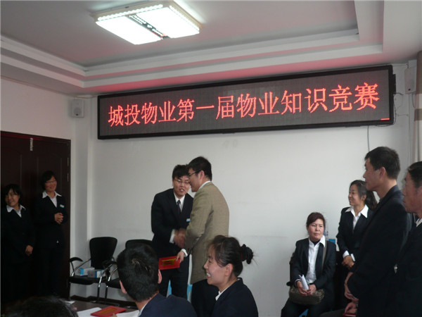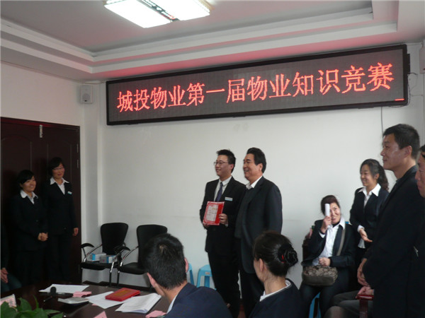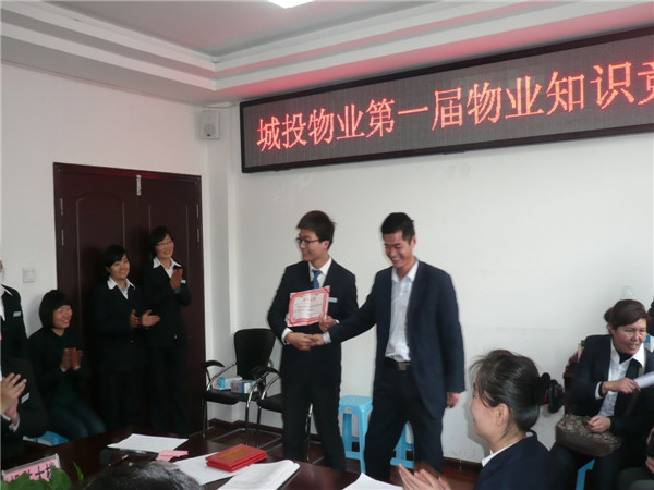 2012年12月21日,物業(yè)公司在統(tǒng)一大樓三樓會(huì)議室舉辦了第一屆物業(yè)知識(shí)競(jìng)賽。此次競(jìng)賽以“增強(qiáng)業(yè)務(wù)知識(shí),提升服務(wù)理念,穩(wěn)固企業(yè)發(fā)展”為主題,競(jìng)賽試題以物業(yè)管理知識(shí)、城投集團(tuán)企業(yè)文化理念、經(jīng)營(yíng)方針為主,并融合了時(shí)事政治和基本常識(shí),從多方面展現(xiàn)陽(yáng)光、上進(jìn)、有責(zé)任的城投青年員工整體素質(zhì)與形象,為公司持續(xù)、健康、穩(wěn)固發(fā)展打下了良好基礎(chǔ)。