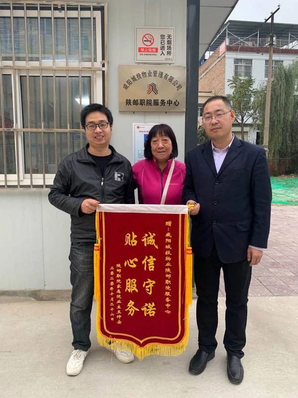 近日,業(yè)主王阿姨將一面寫有“誠信守諾 貼心服務(wù)”的錦旗送到了郵校物業(yè)服務(wù)中心,對(duì)工作人員盡職盡責(zé)、熱情周到的服務(wù)表示感謝。