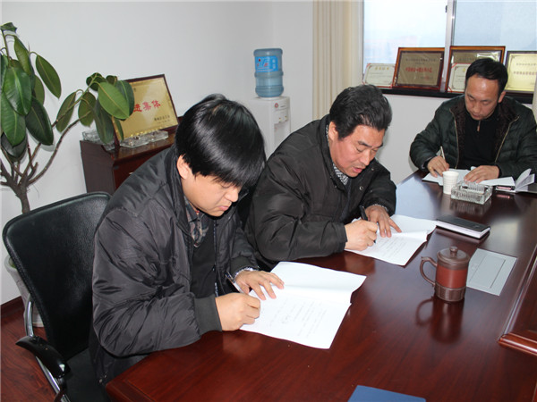 會(huì)后,為充分體現(xiàn)框架式管理模式,同時(shí)便于年終考核,獎(jiǎng)優(yōu)罰劣,總經(jīng)理趙明海與各負(fù)責(zé)人簽訂了2014年度目標(biāo)責(zé)任書。為強(qiáng)化落實(shí)安全工作,主管安全工作的副總魏述剛與各負(fù)責(zé)人簽訂了2014年安全生產(chǎn)管理目標(biāo)責(zé)任書。