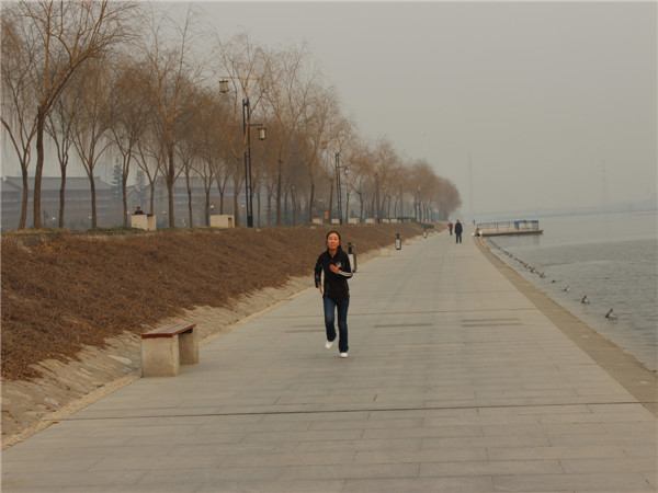 拔河比賽后全體隊員稍事調整后,如數參加了長跑比賽,賽程設置往返于統(tǒng)一大樓對應的咸陽湖畔到二號橋。裁判一聲令下,隊員們爭先恐后的離開了起跑線,經過四十分鐘左右的角逐,最終男子組張耀成、王威龍、董放放分獲前三名,女子組由李燕君、王幸、史秀娥奪得前三。