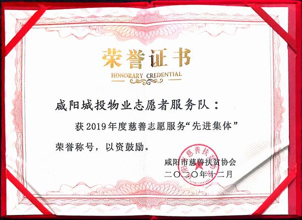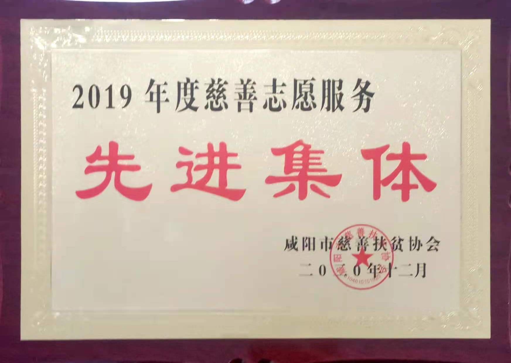 榮獲2019年度慈善志愿服務“先進集體”榮譽稱號